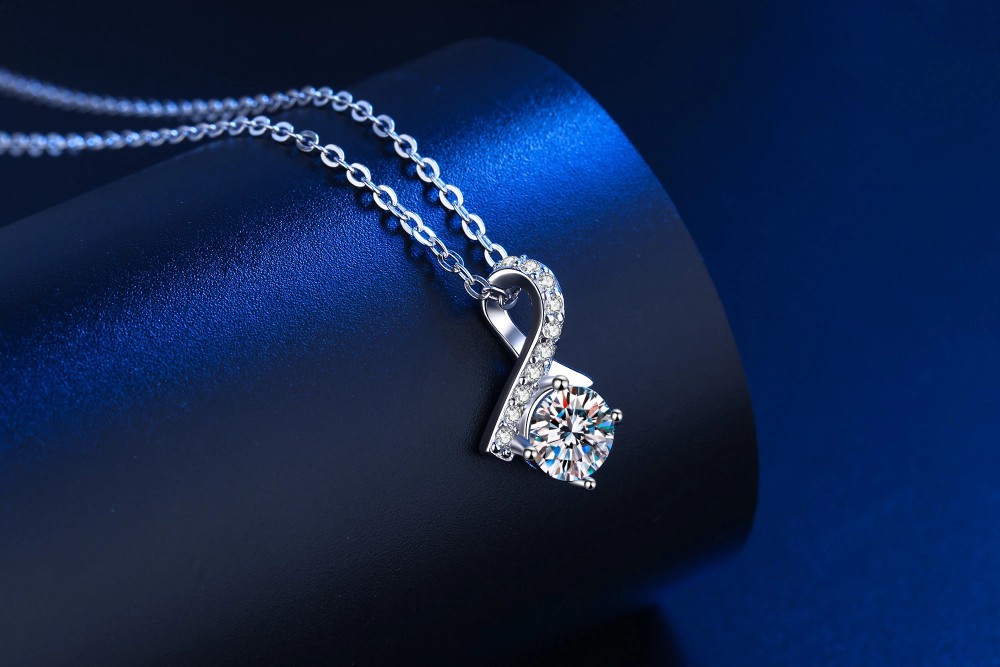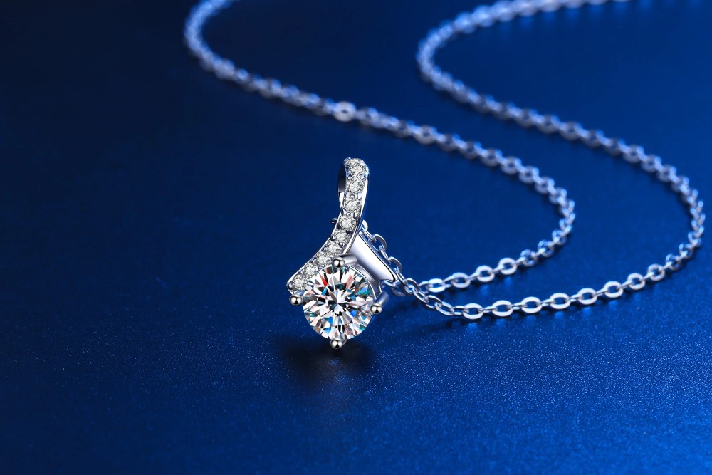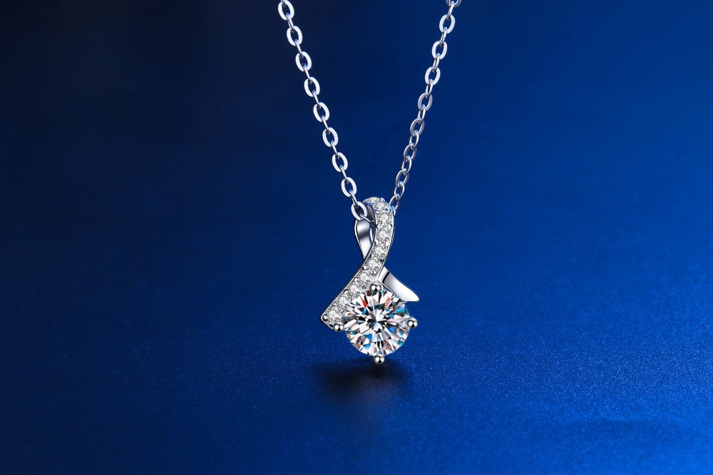 S925 Silver Necklace With White Gold Plating And Moissanite Stones